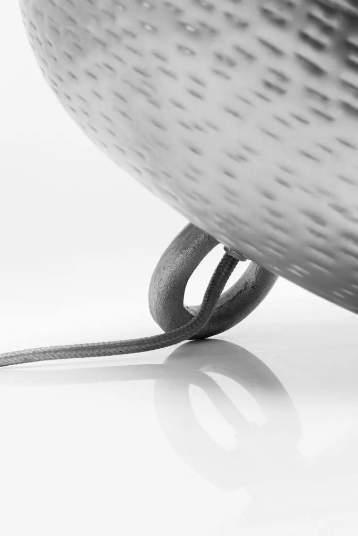 Diese Beschichtung leuchtet besonders intensiv, wenn die Lampe per Kippschalter angeschaltet wird. Die Außenseite der Stahllampe ist in Messing beschichtet. Die ungewöhnliche Tischlampe findet am besten auf einem großen Tisch Platz, sodass Raum genug ist, sich selbst hinzusetzen und zum Beispiel etwas zu arbeiten. Alternativ kann sie auf einem kleinen Beistelltisch platziert werden und strahlt von hier aus ihr wunderbares Licht ab. Die Leuchte selbst ist wechselbar und verbraucht nur 25 Watt. Die attraktive Lampe besitzt einen Durchmesser von 35 Zentimetern.“