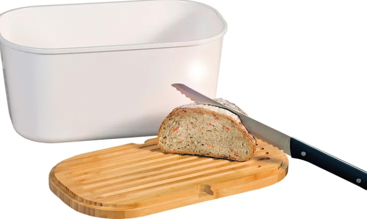 Entdecken Sie den praktischen Brotkasten aus der Serie Bambus von Kesper. Mit einer Breite von 21 cm, einer Höhe von 18,2 cm und einer Länge von 37 cm bietet er ausreichend Platz für Ihre Backwaren. Der Kasten ist lebensmittelgerecht und sorgt dafür, dass Ihr Brot länger frisch bleibt. Gefertigt aus einer Kombination von Holz und Kunststoff, vereint dieser Brotkasten Funktionalität und ansprechendes Design. Der Hauptkörper besteht aus robustem Melaminharz in Weiß, während der Deckel aus hochwertigem Bambus gefertigt ist. Diese Materialwahl sorgt nicht nur für eine ansprechende Optik, sondern auch für Langlebigkeit und einfache Pflege. Der Brotkasten hat eine elegante weiße Basis mit einem natürlichen Bambusdeckel, der einen warmen Kontrast bietet.