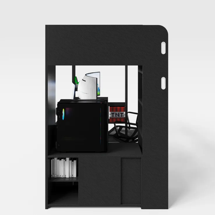 Kinder Hochbett MINECRAFT 90 x 200 cm schwarz/ grau