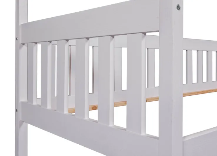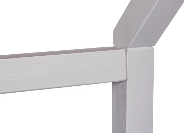 Dank der schlichten Farbgebung passt das Kinderbett RUDOLF ideal zu jedem Einrichtungsstil, egal ob farbenfroh oder dezent. Ein heimeliges Gefühl schenkt die Oberkonstruktion. Sie kann mit Decken in ein Dach verwandelt werden, sodass eine behagliche Höhle entsteht.