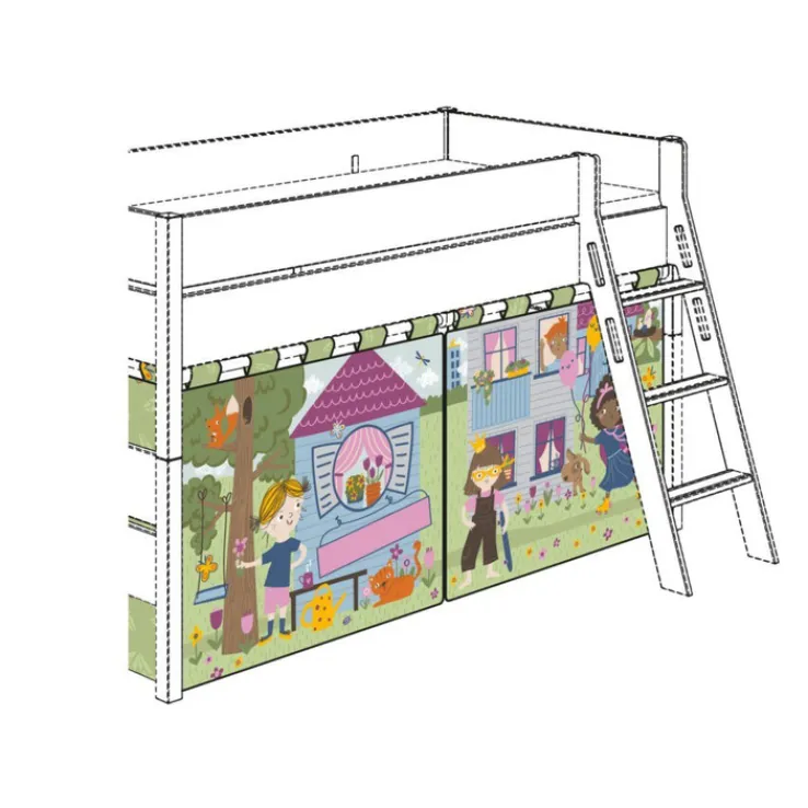 Der PAIDI Kindervorhang TIAGO besteht aus hochwertiger Baumwolle und lässt sich an den Schlaufen schnell und einfach an der Längsseite des Bettes befestigen. Idealerweise wird er mit dem Vorhang für die Querseite kombiniert. Das untere Etagenbett beziehungsweise der Bereich unter dem Spielbett verwandelt sich mit diesen Vorhängen in eine kleine Höhle, die dem Nachwuchs Tag und Nacht Geborgenheit bietet. Selbstverständlich lassen sichd ie Vorhänge mühelos öffnen und das Kind kann jederzeit aus seinem Versteck hervorkommen.
