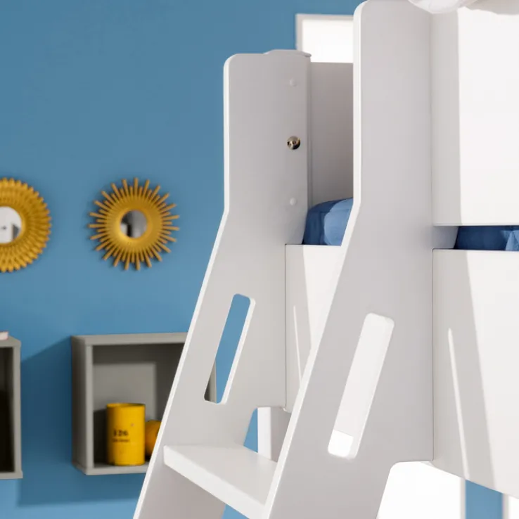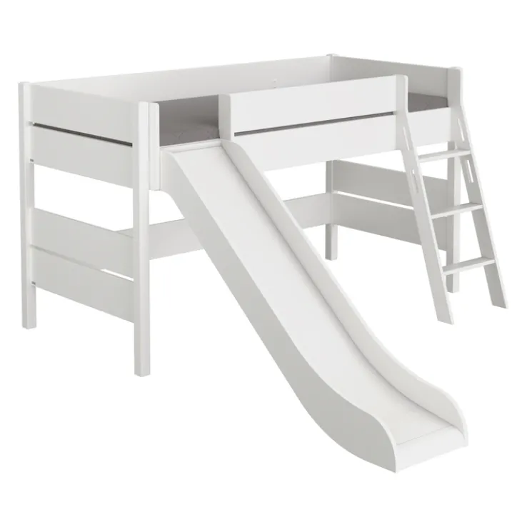 Das weiße Spielbett TIAGO mit Leiter und Rutsche sorgt dafür, dass die Kleinen das Schlafengehen gar nicht abwarten können, denn die Aussicht auf die Rutschpartie nach dem Aufwachen ist einfach zu verlockend!