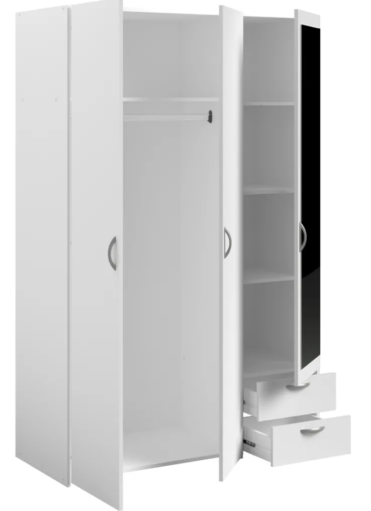 Anzahl Drehtüren inklusive: 3Anzahl Kleiderstangen inklusive: 1 Stk.Anzahl Schubkästen inklusive: 2Anzahl Einlegeböden inklusive: 4