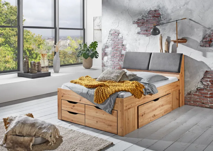 Mit dem Stauraum-/Funktionsbett MAXI in Braun mit einer Liegefläche von 140 x 200 cm ziehen hoher Schlafkomfort, viel Stauraum und Natürlichkeit in das Schlafzimmer ein. Das Bett sorgt mit seinem modernen, natürlichen Design zudem mit einem stylischen Ambiente zum Wohlfühlen.
