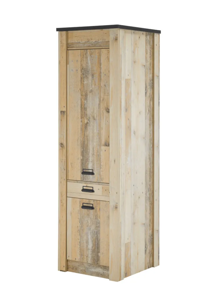 Der Küchenschrank aus der Serie SHERWOOD besticht durch sein modernes Design und die ansprechende Holznachbildung im Farbton „Old Style“. Mit einer Breite von 62 cm, einer Höhe von 201 cm und einer Tiefe von 64 cm bietet er ausreichend Stauraum für Ihre Küchenutensilien. Der Schrank verfügt über zwei Drehtüren und eine Schublade, die eine praktische Aufbewahrungslösung darstellen.