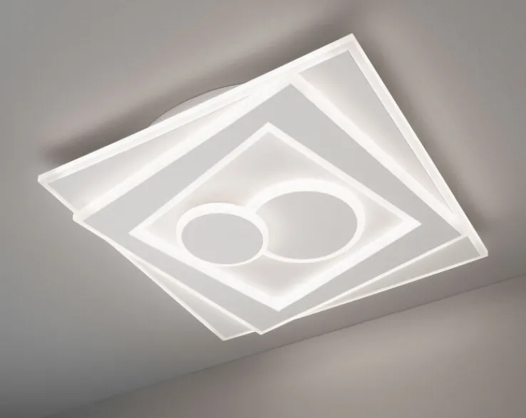 Die LED-Deckenlampe aus der Serie STAIRS besticht durch ihr modernes, quadratisches Design und die klare weiße Farbgebung. Mit einer Breite und Tiefe von jeweils 53 cm und einer Höhe von 6,5 cm fügt sie sich harmonisch in verschiedene Raumkonzepte ein. Die Lampe besteht aus einer Kombination von Metall und Acryl, was ihr eine elegante und zugleich robuste Erscheinung verleiht. Die integrierte LED-Technologie sorgt für eine maximale Lichtleistung von 3.750 Lumen bei einem Energieverbrauch von 50 Watt, was eine effiziente und helle Ausleuchtung gewährleistet. Besonders hervorzuheben ist die dimmbare Funktion sowie die Möglichkeit zur Lichtfarbverstellung (CCT) zwischen 3.000 und 6.500 Kelvin, die eine Anpassung der Lichtstimmung an individuelle Bedürfnisse ermöglicht. Die Schutzart IP20 macht die Lampe ideal für den Einsatz in Wohnräumen. Eine Fernbedienung ist im Lieferumfang enthalten. Die Deckenlampe ist fest mit einer LED-Brennstelle ausgestattet, was eine lange Lebensdauer und geringe Wartungskosten verspricht.