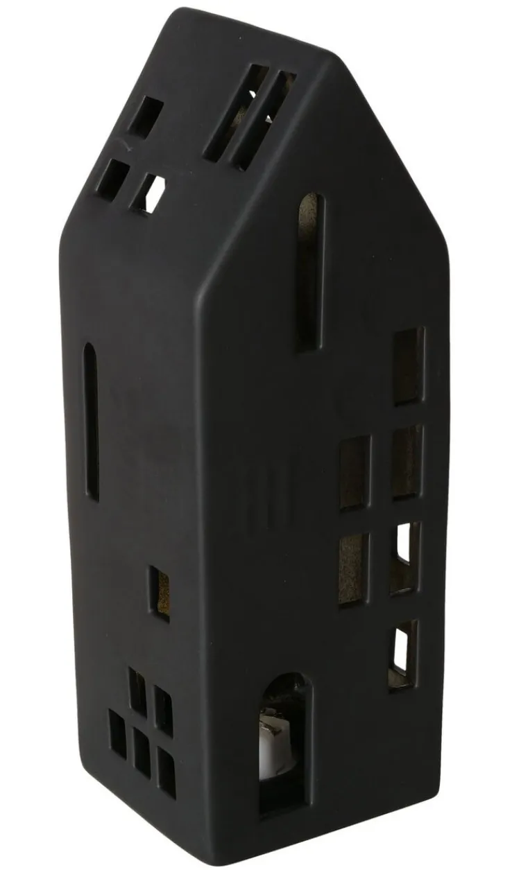 Das LED Lichtobjekt Haus HYGGA besteht aus matt schwarzer Keramik und hat eine Größe von 7 x 20 x 8 cm. Im Inneren des Turms ist eine warmweiße LED eingebaut. Diese lässt sich mit drei LR44 Knopfzellen mit Strom versorgen. Batteriebetrieben ist das Lichtobjekt an jedem gewünschten Standort einsetzbar. Durch das stilvolle Design ist das Haus während der Weihnachtszeit und allen anderen Jahreszeiten ein schöner Blickfang.