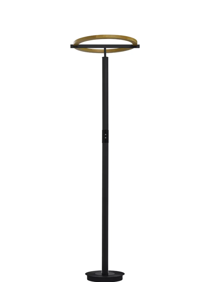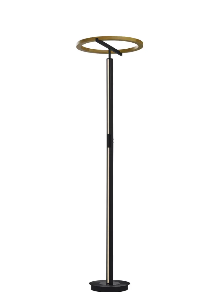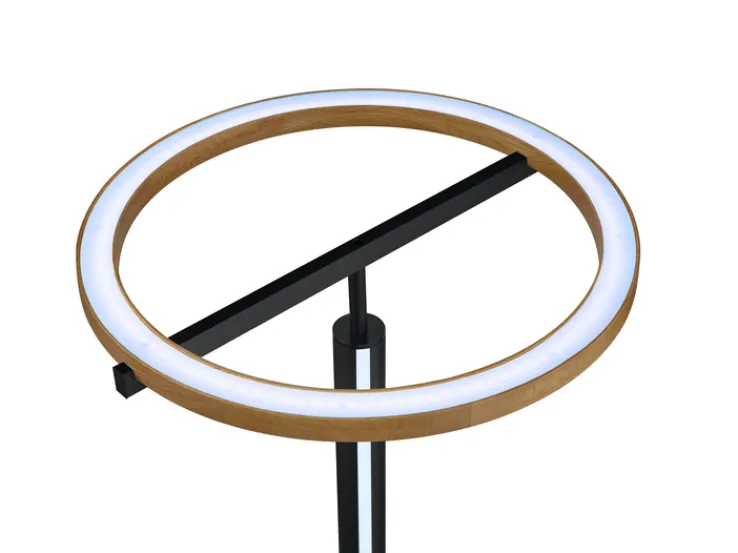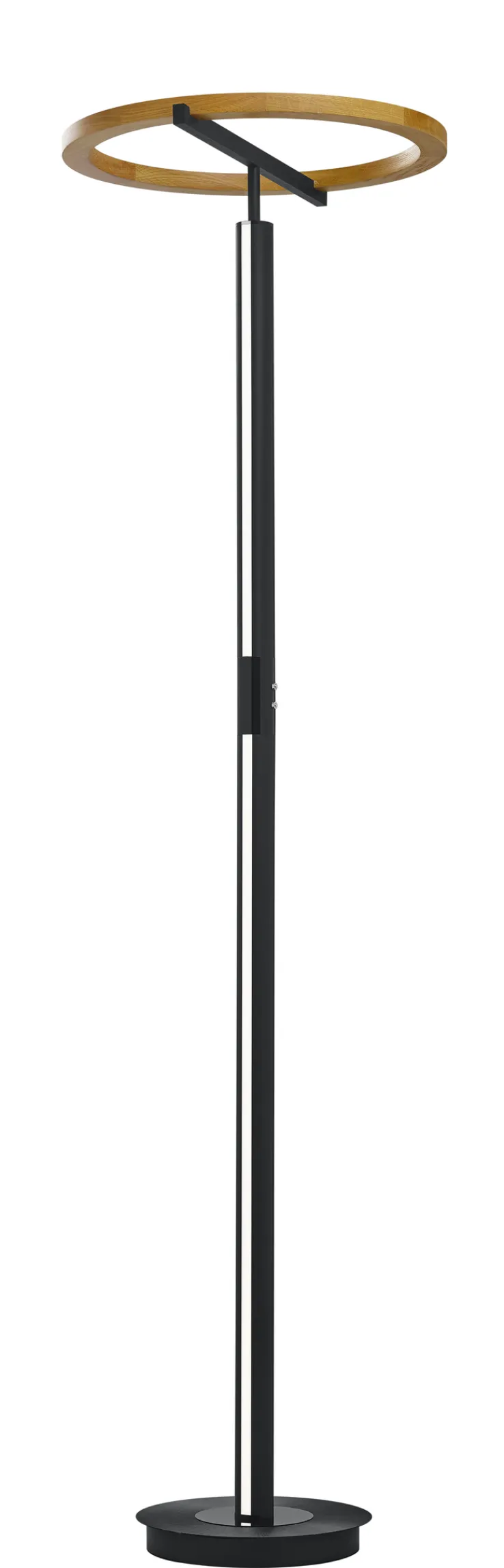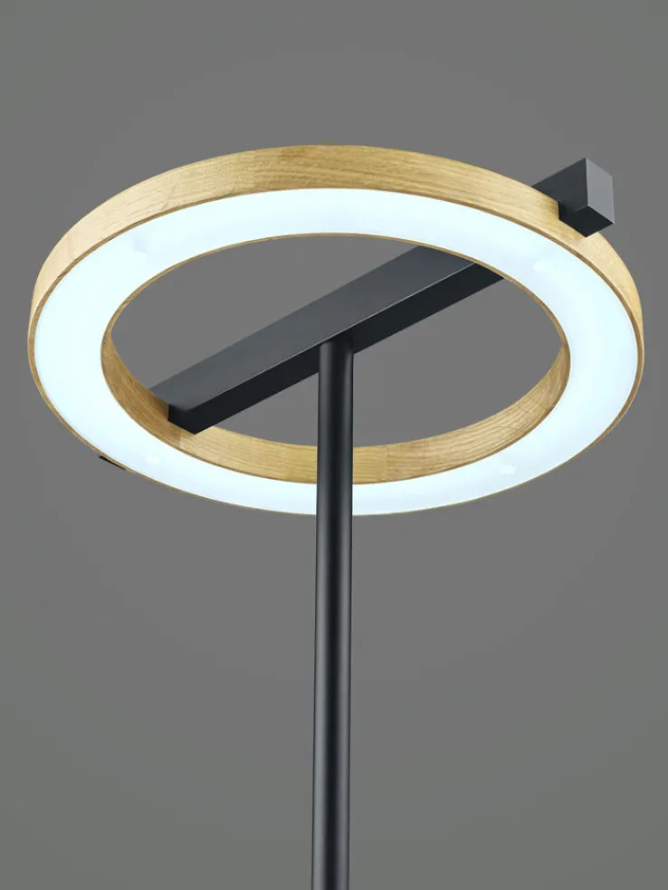 Die LED-Stehlampe der Serie NELLA vereint modernes Design mit funktionaler Beleuchtung. Mit einer Höhe von 182 cm und einem Durchmesser von 50 cm fügt sich die Lampe harmonisch in verschiedene Wohnräume ein. Die Hauptfarben Braun und Schwarz verleihen der Lampe eine elegante Optik, die durch die Kombination aus Holz und Metall unterstrichen wird. Der runde Lampenschirm aus Holz sorgt für eine warme Ausstrahlung, während der schwarze Metallfuß Stabilität bietet.
