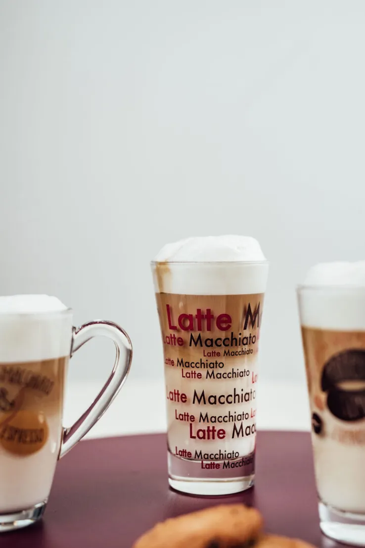 Die aparten LEONARDO ENJOY Gläser bestehen aus pflegeleichtem Kalk-Natron Glas. In rot-braunen Schriftzügen sind sie über und über mit „Latte Macchiato“ Schriftzügen bedeckt. Die leicht konische Form mit großer Öffnung verspricht eine köstliche Entfaltung des Aromas und einen exquisiten Kaffeegenuss. Das transparente ENJOY Glas lässt den Blick frei auf Kaffee, Milchkaffee und Milch-Schaumkrone. Die Firma LEONARDO ist für ihre formschönen Gläser bekannt und sorgt mit italienischem Charme für besondere Wohlfühlmomente. In Ihrem porta! Online Shop sind noch weitere attraktive Glasobjekte verfügbar.