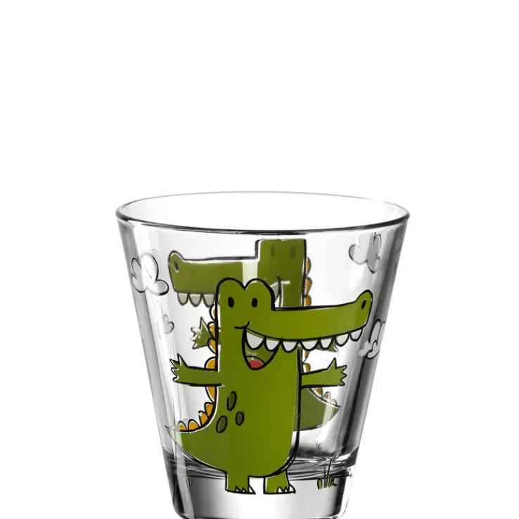 Mit dem handlichen LEONARDO Kindergeschirr Becher BAMBINI KROKODIL lernt der Nachwuchs den Umgang mit Trinkbechern aus Glas und hat jede Menge Spaß dabei.