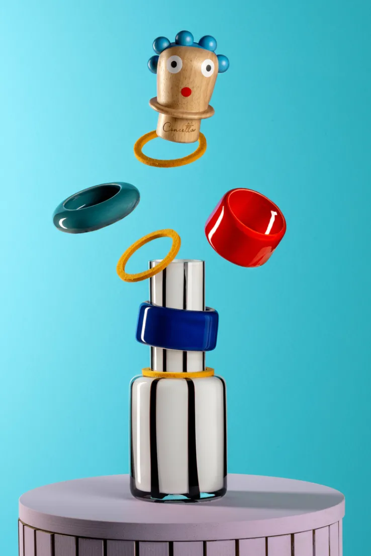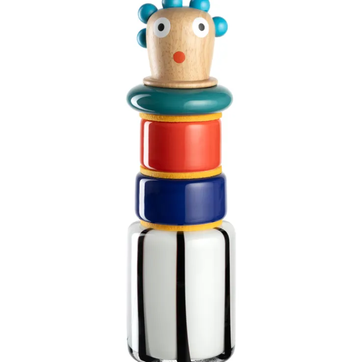 Die Vase aus der Serie BUONI AMICI vereint kunstvolles Design mit hochwertigen Materialien. Sie besteht aus Glas, Holz und Keramik und ist ein handgefertigtes Unikat. Die Vase ist stapelbar und zeichnet sich durch ihr Art Déco-Stil aus. Mit einer Höhe von 37 cm und einer Breite von 15,2 cm ist sie ein auffälliges Dekorationsstück, das in jedem Raum Akzente setzt.