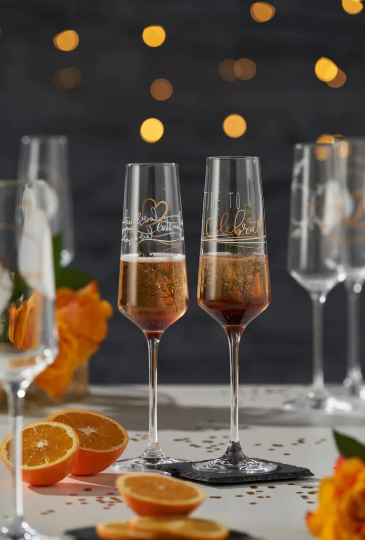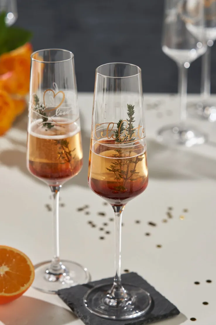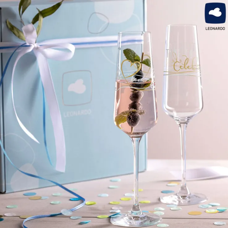 Das Set PRESENTE CELEBRATE besteht aus zwei langstieligen Sektgläsern mit einer Gesamthöhe von je 30,7 cm. Mit einem Gewicht von je 158 g liegen die Sektflöten gut in der Hand und regen zum klangvollen Anstoßen an. Besonders alltagsfreundlich: Die Gläser können bequem in der Spülmaschine gereinigt werden und sind im Nu bereit für den nächsten festlichen Anlass.