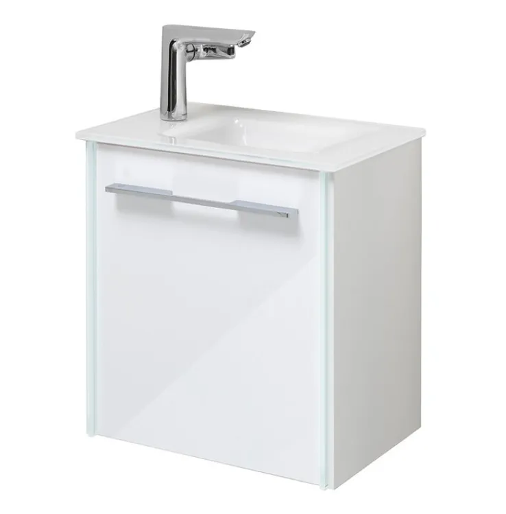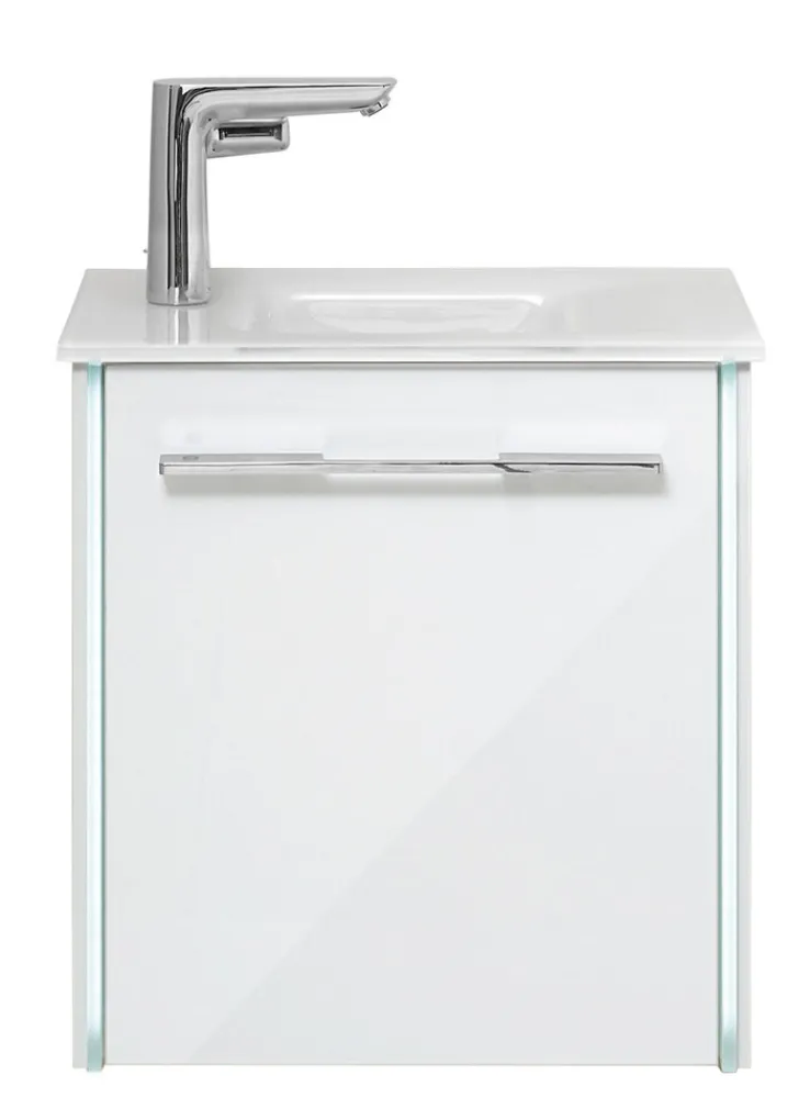 Bestehend aus Waschbeckenunterschrank und Waschbecken ist dieser moderne Waschplatz von LEONARDO ideal für kleinere Bäder oder Gäste-WC. Der schneeweiße Korpus aus hochwertigem Holzwerkstoff ist mit einer optiwhite Glasfront und chromfarbigem Griff versehen.
