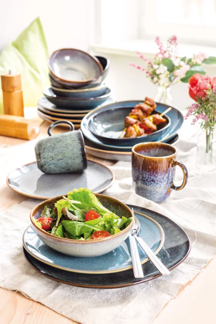 Die flache Schale aus dem LAVE-Sortiment der like.-Kollektion vom renommierten Label Villeroy & Boch ist türkis und hat eine Breite von 27 cm. Sie kann zur stilvollen Präsentation der verschiedensten Snacks verwendet werden. So lassen sich Nüsse, gebrannte Mandeln, aber auch Canapés geschmackvoll arrangieren. Wer sein Frühstück auf eine ganz besondere Art genießen möchte, kann die Schale auch für das Müsli nutzen. Dank ihres neutralen Designs kann sie vielseitig zu anderen Geschirrteilen kombiniert werden.