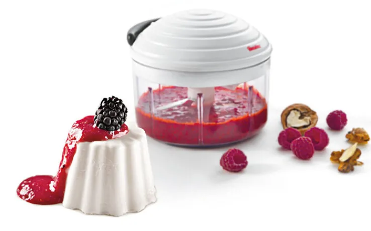 Der vielseitige Zerkleinerer von metaltex ist das ideale Küchengerät zum Mixen, Rühren und Raspeln in vier verschiedenen Schnittgrößen. Ausgestattet mit hochwertigen Klingen aus rostfreiem Edelstahl zerkleinert der ROTO MAC Gemüse, Obst, aber auch Nüsse zum Backen genau auf die gewünschte Größe. Durch den intelligenten Zugmechanismus ist er leicht zu bedienen und liefert immer gleichbleibende Ergebnisse. Auch zum Passieren von Suppen, Pesto, Desserts oder Soßen ist der Zerkleinerer gut geeignet.