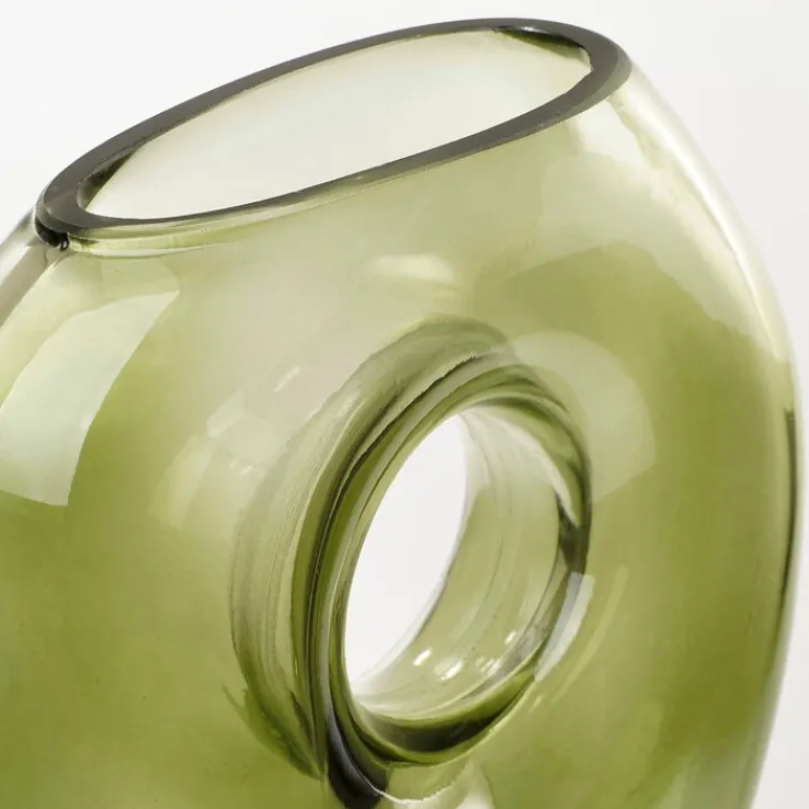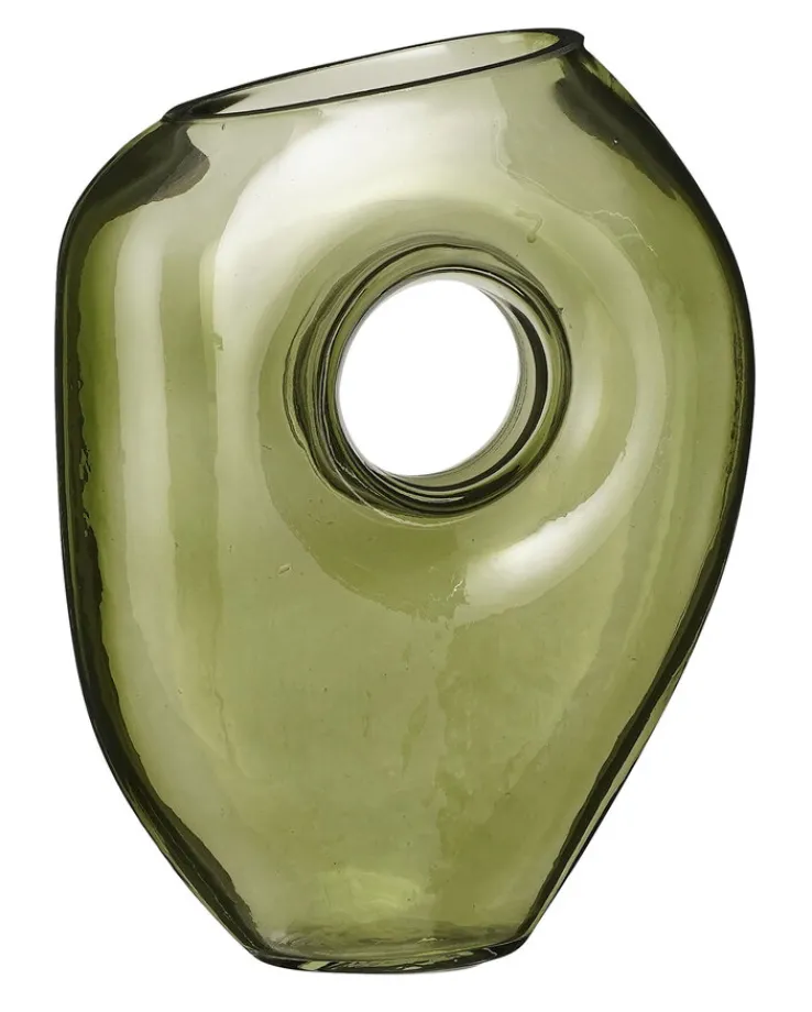 Diese außergewöhnliche Vase aus grünem Glas zeichnet sich durch ihre bemerkenswerte Gestaltung aus. Mit Maßen von 30 cm Höhe und einem Durchmesser von 15 cm ist die MICA DECORATIONS Vase JAY ein imposantes Kunstwerk für jedes Zuhause. Ihr einzigartiges Design-Merkmal ist das faszinierende Loch in der Mitte, das kreative Blumendekorationen ermöglicht.