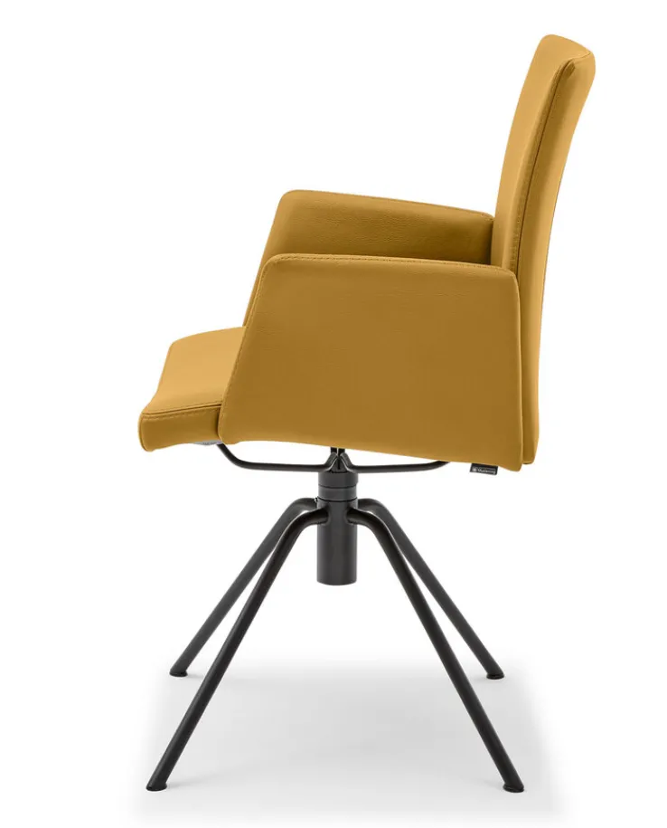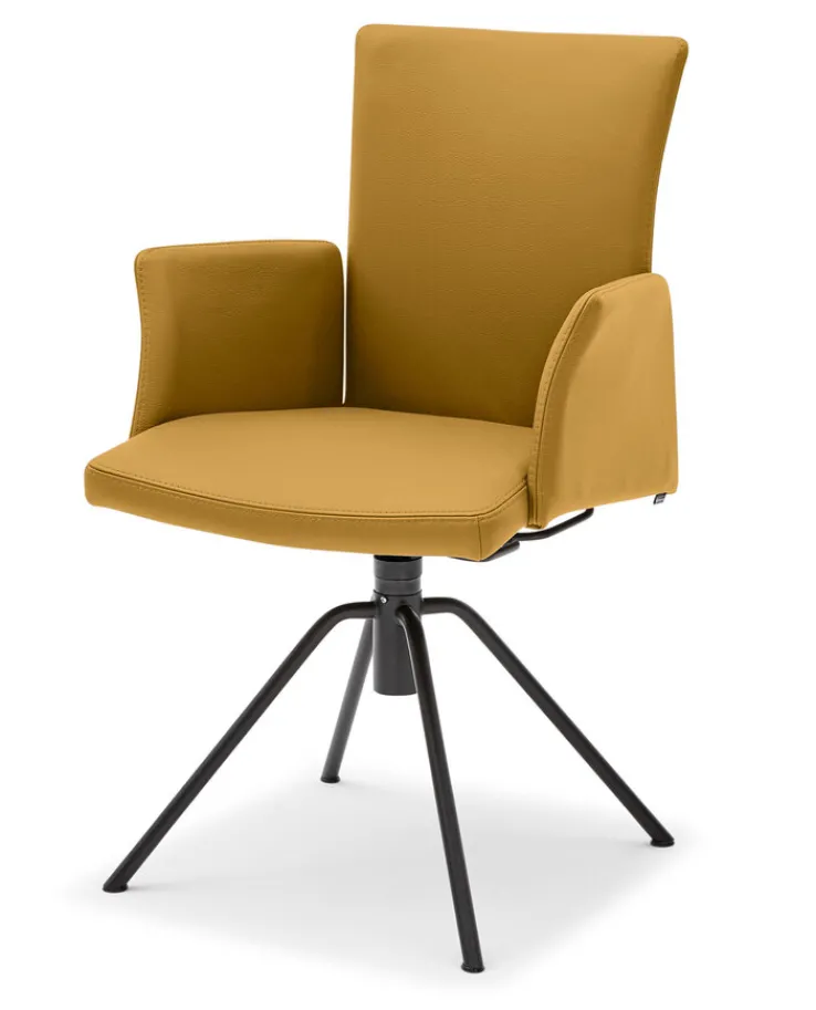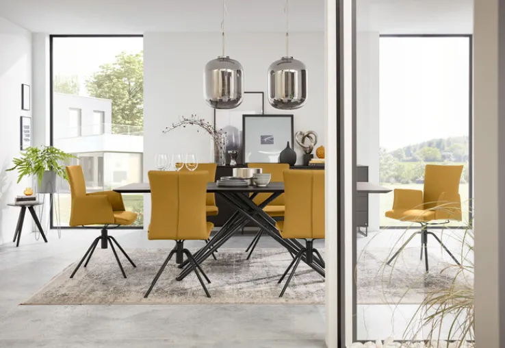 Der Armlehnstuhl HELMOND MOOVER in Gelb und Schwarz von Musterring überzeugt durch ein exklusives Design und eine moderne Formensprache. Er verleiht dem Esszimmer ein geschmackvolles Ambiente.