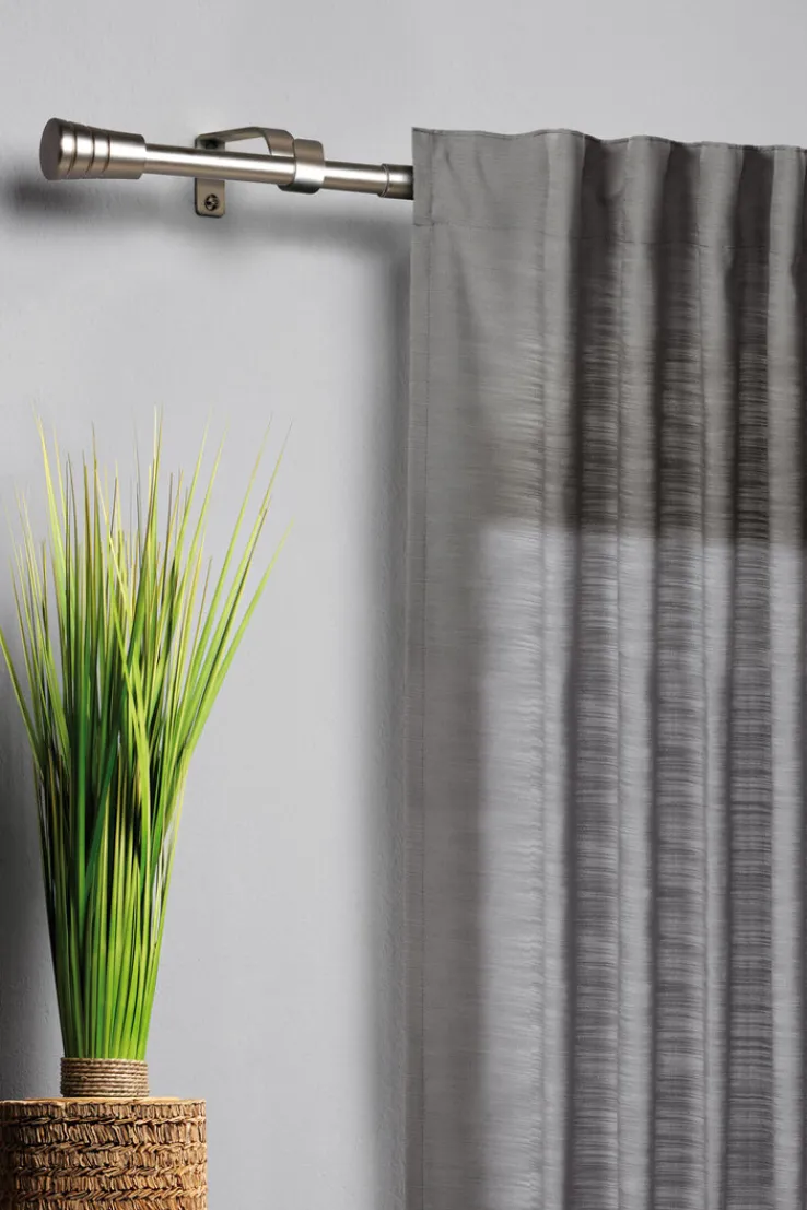 Im Set enthalten sind neben der Teleskopstange drei Träger und die konisch geformten Endknöpfe mit den eingeschnittenen Rillen. Die moderne Optik wirkt geometrisch, passt zu grafischen Einrichtungsstilen wie auch ins Industrial Design. Sogar minimalistisch eingerichtete Wohn- und Schlafräume profitieren von der praktischen Teleskopstange, die für junges Wohnen im urbanen Umfeld und unproblematische Umzüge steht. Breite Fensterfronten, Balkon- und Terrassentüren – bei einer flexiblen Breite von 160 bis 280 Zentimetern ist das alles kein Problem.