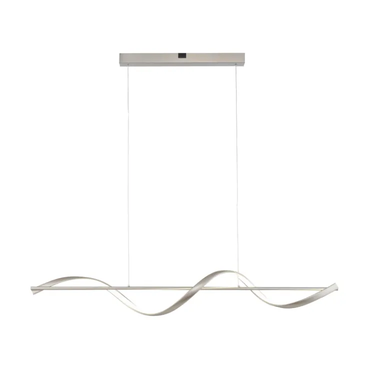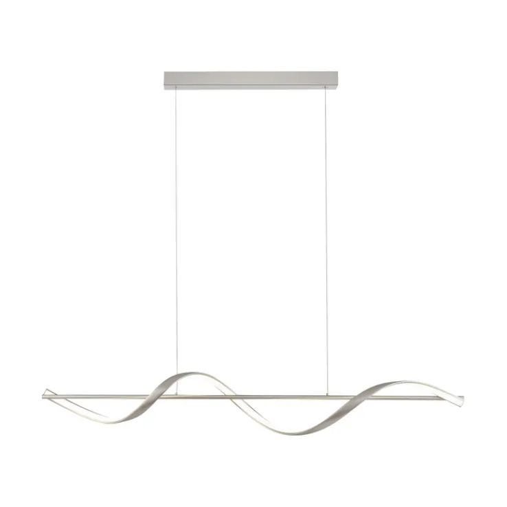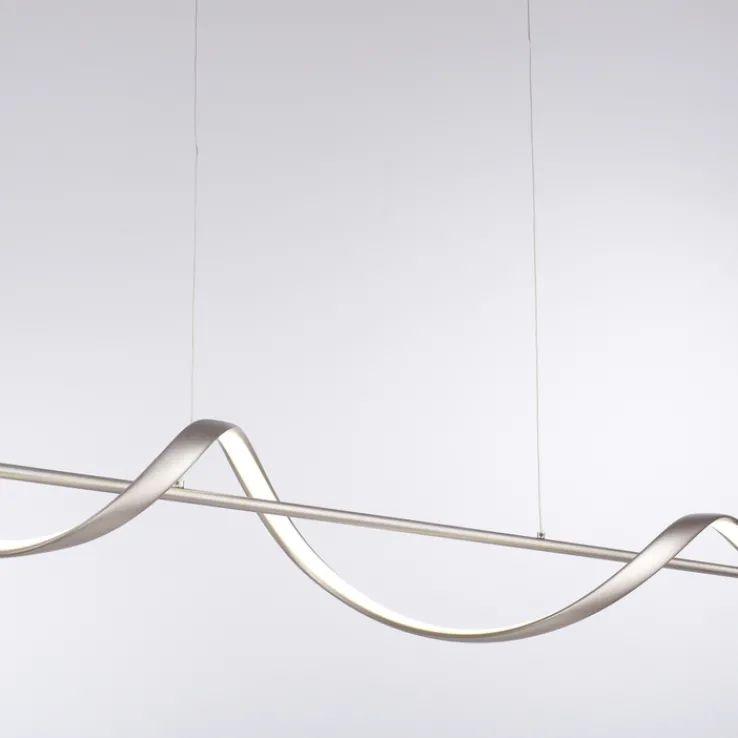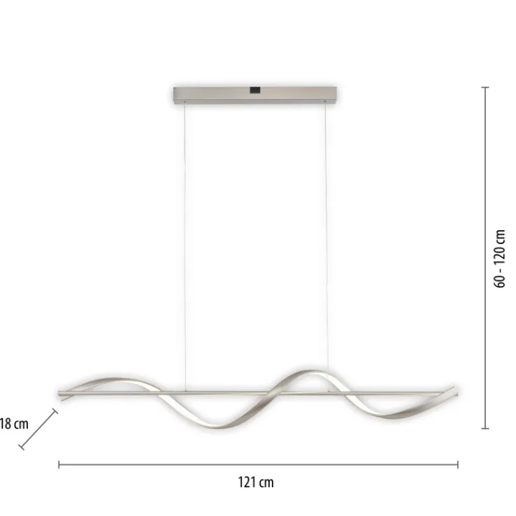 Das silberfarbige LED Balkenpendel Q-SWING ist aus Metall gefertigt. Es ist 18 cm breit und 121 cm tief sowie ein wahrer Hightech-Alleskönner. Das Licht der LED Pendelleuchte Q-SWING von Paul Neuhaus strahlt von einem in sich gedrehten Wellen-Element ab. Die Farbtemperatur ist von 2.700 Kelvin oder Extra Warmweiß bis 5.000 Kelvin beziehungsweise Kaltweiß einstellbar. Außerdem ist das vorhandene, fest eingebaute 27-Watt-LED-Leuchtmittel dimmbar. Es erreicht eine Lichtleistung von bis zu 3.100 Lumen. Auch eine Memory-Funktion ist vorhanden. Die Einstellungen werden über die ebenfalls beiliegende Fernbedienung vorgenommen. Überdies ist die Hängelampe ebenso Smart Home wie ZigBee fähig und kann sogar bei vorhandener Hardware Sprachsteuerung per Plug & Play mit Alexa verbunden werden.