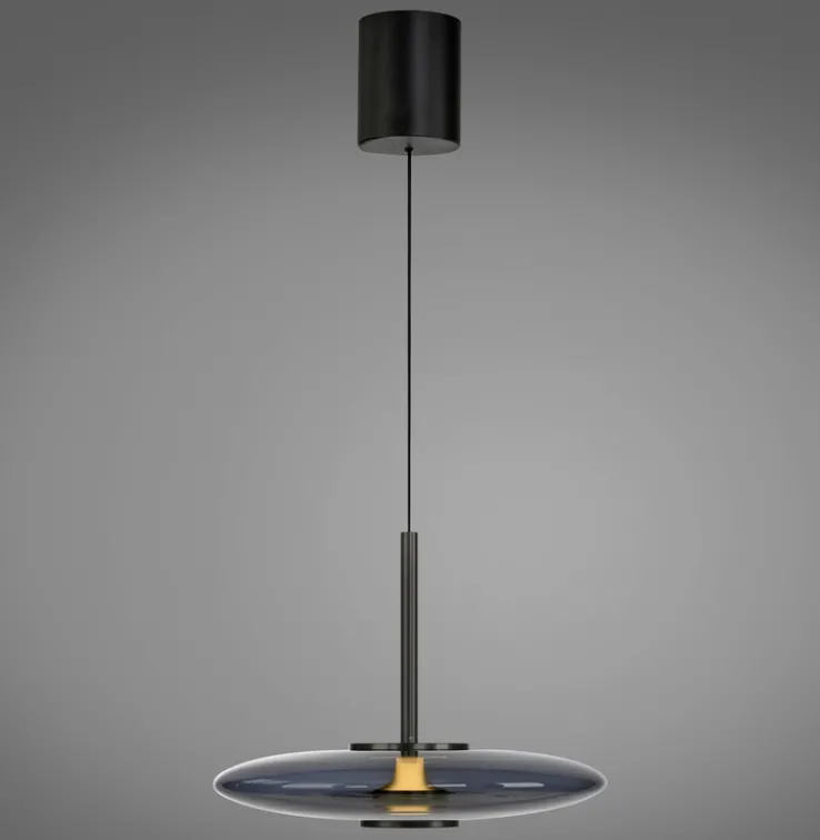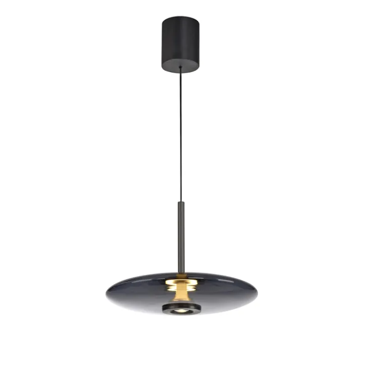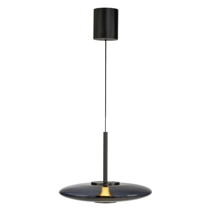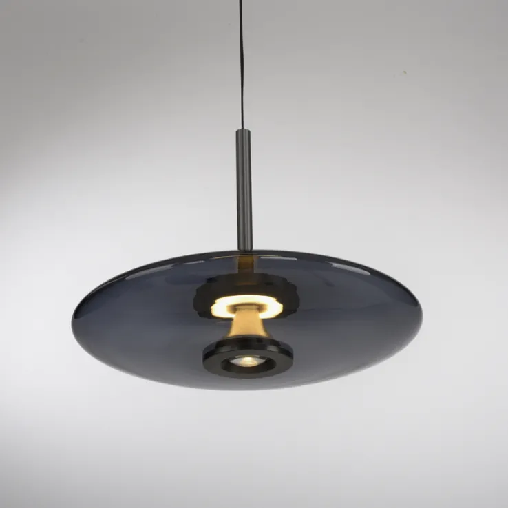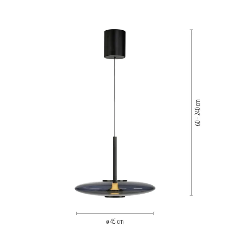 Die LED Pendelleuchte PURE E-VITRUM hat einen Durchmesser von 45 cm und besteht aus graufarbigem Metall und transparentem Glas. Sie ist durch ihre enorme Funktionsvielfalt äußerst anpassungsfähig.