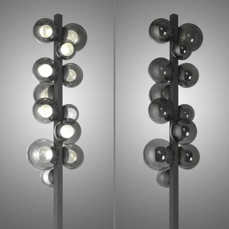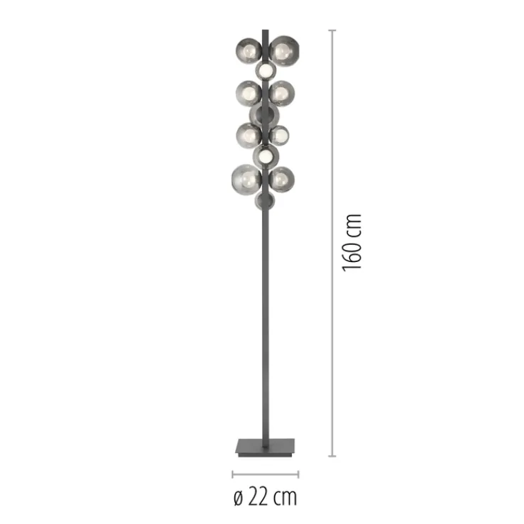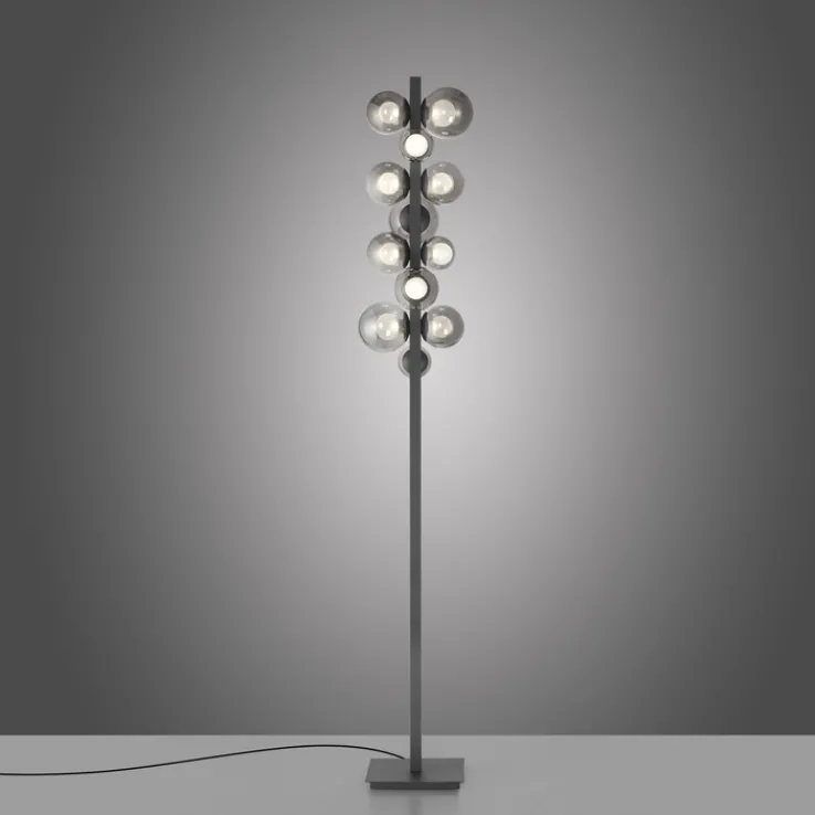 Die graufarbige LED Stehlampe PURE POPUP 12-flg besteht zu einem großen Teil aus Glas und ist 160 cm hoch. Sie verfügt über einen stufenlos anpassbaren Touchdimmer und bietet zahlreiche Einstellungsoptionen sowie eine Memory-Funktion.