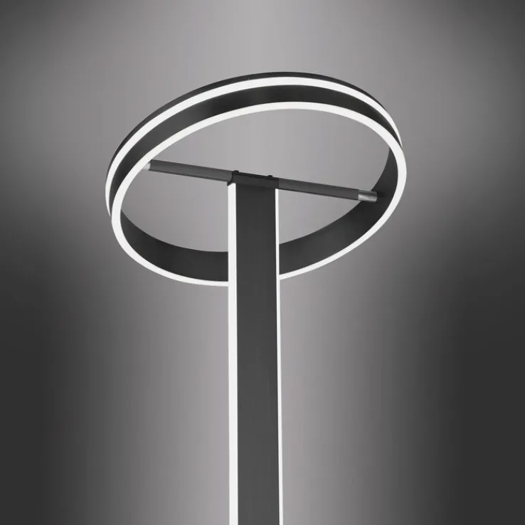 Ob im Wohn- oder Schlafzimmer: Besonders in moderne Räume fügt sich die in Anthrazit gehaltene Stehlampe von Paul Neuhaus mit Leichtigkeit ein. Der Schirm der 3-flammigen Lampe lässt sich verstellen, um ideale Lichtverhältnisse entstehen zu lassen. Doch auch das Licht selbst kann mithilfe der Fernbedienung reguliert werden. Sowohl die Lichtfarbe als auch die Lichthelligkeit sind anpassbar. Die für die Beleuchtung erforderlichen LEDs sind bereits fest verbaut und helfen, möglichst wenig Strom zu verbrauchen.