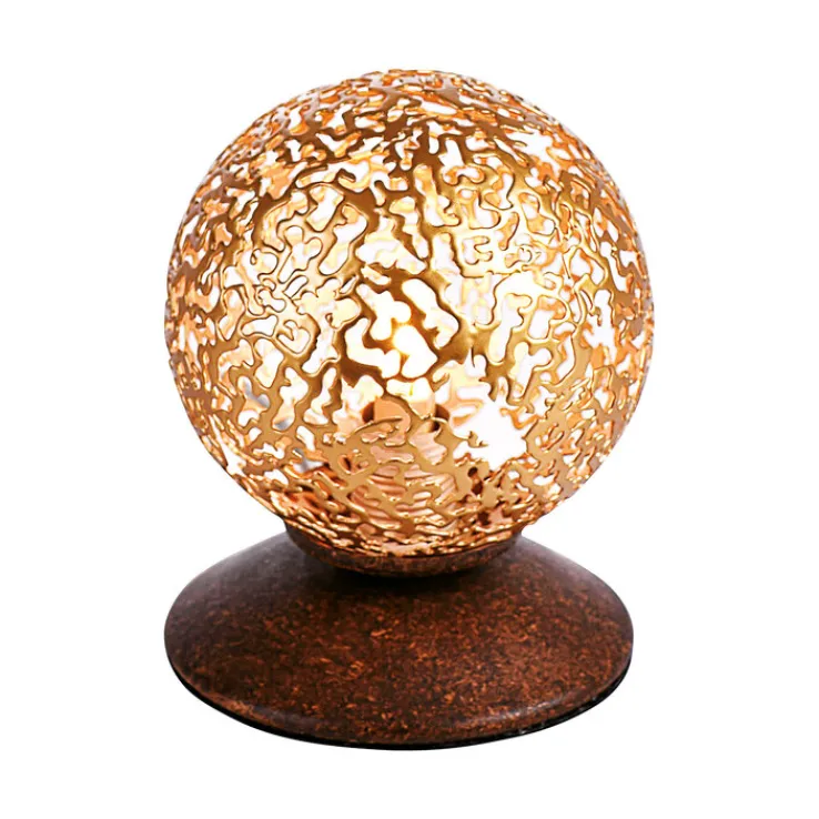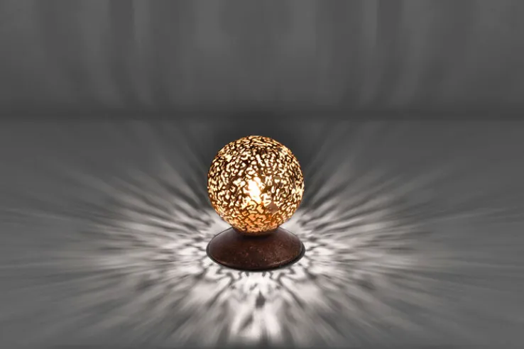 Die GE-geprüfte Paul Neuhaus Retrofit Tischlampe GRETA im Landhausstil besteht aus einem rostfarbigen Lampenfuß und einer goldfarbigen Kugel. Mit der lichtdurchlässigen Kugel wirft die Tischlampe ein bezauberndes Muster an Wand und Decke. Als Leuchtmittel eignen sich 40 Watt AGL und Retrofit Glühbirnen sowie 8 Watt LED Leuchtmittel mit G9 Fassung. Ein- und ausschalten lässt sich die Tischlampe GRETA ganz einfach mit dem Schnurschalter an der Zuleitung. Ob auf Tisch oder Kommode, diese Tischleuchte wirkt überall.