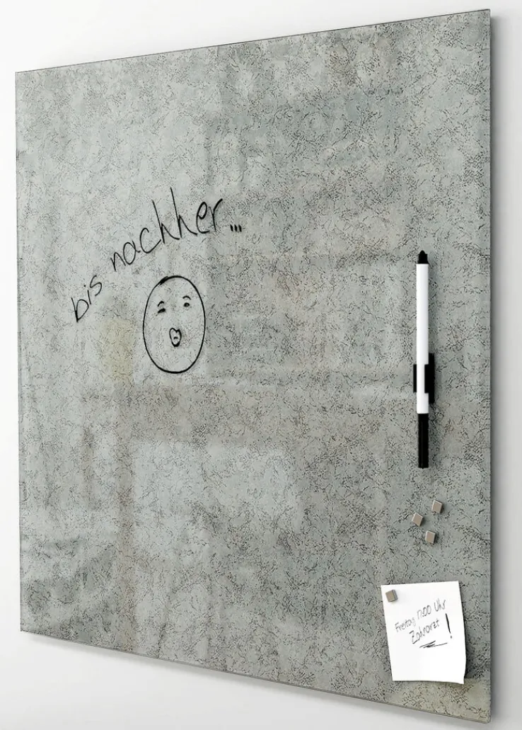 Mit einem Maß von 50 x 50 cm findet das PRO ART Memoboard aus Metall schnell seinen berechtigten Platz in Ihrem Zuhause. Das Memoboard wird mit Stift und vier Magneten geliefert. Schnell sind Textnachrichten darauf notiert und auch wieder abgewischt. Damit der Stift nicht verloren geht, ist extra eine Halterung zur sicheren Verwahrung angebracht. Mit den Magneten können Sie Notizzettel, Postkarten und Erinnerungsstücke an das Memoboard pinnen. So erstellen Sie jederzeit ein spannendes Gesamtbild in Form einer Collage. Lassen Sie sich von Qualität und Design überzeugen!