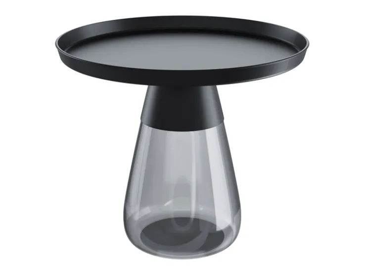 Der Tisch besticht durch seine klare Linienführung und die Verwendung von hochwertigen Materialien. Die Tischplatte aus schwarzem Metall bietet eine stabile Ablagefläche, während der gläserne Unterbau in Rauchgrau dem Tisch eine leichte und elegante Note verleiht. Mit einem Gewicht von 13 kg ist der Tisch stabil und dennoch leicht genug, um flexibel im Raum platziert zu werden. Dieser Beistelltisch ist die ideale Ergänzung für moderne Wohnräume, die Wert auf Design und Funktionalität legen.