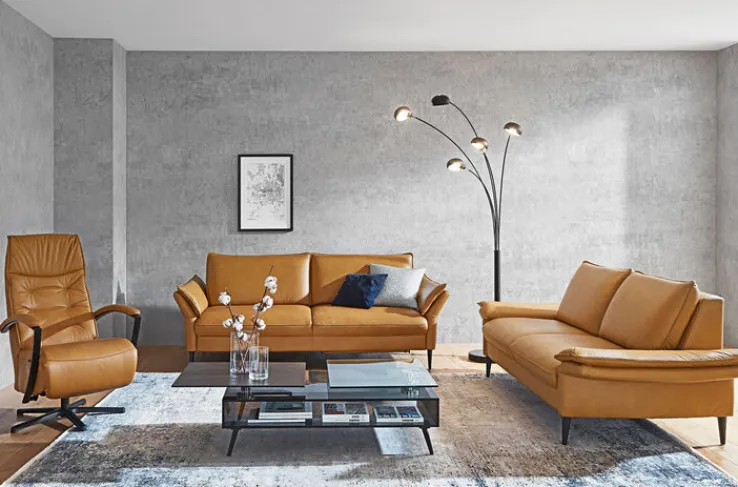 PURO Ledersofa 3-Sitzer STRASSBURG II Cloudy kurkuma