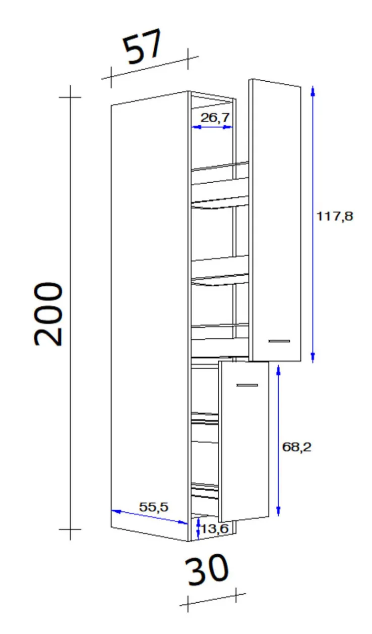 Breite: 30 cmHöhe: 200 cmTiefe/Ausladung: 57 cmLänge: 57 cm