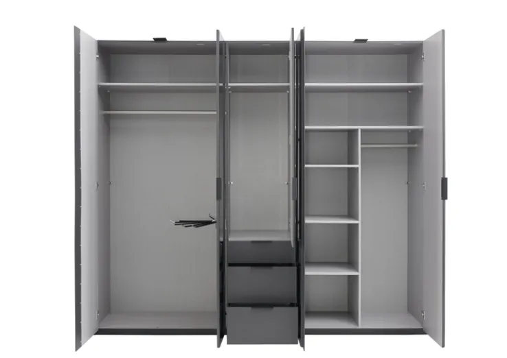 Anzahl Drehtüren inklusive: 5Anzahl Kleiderstangen inklusive: 3 Stk.Anzahl Schubkästen inklusive: 3Anzahl Einlegeböden inklusive: 3