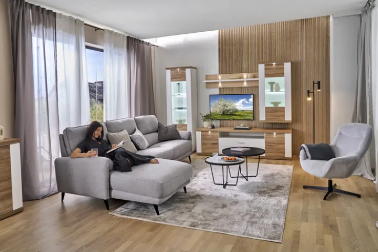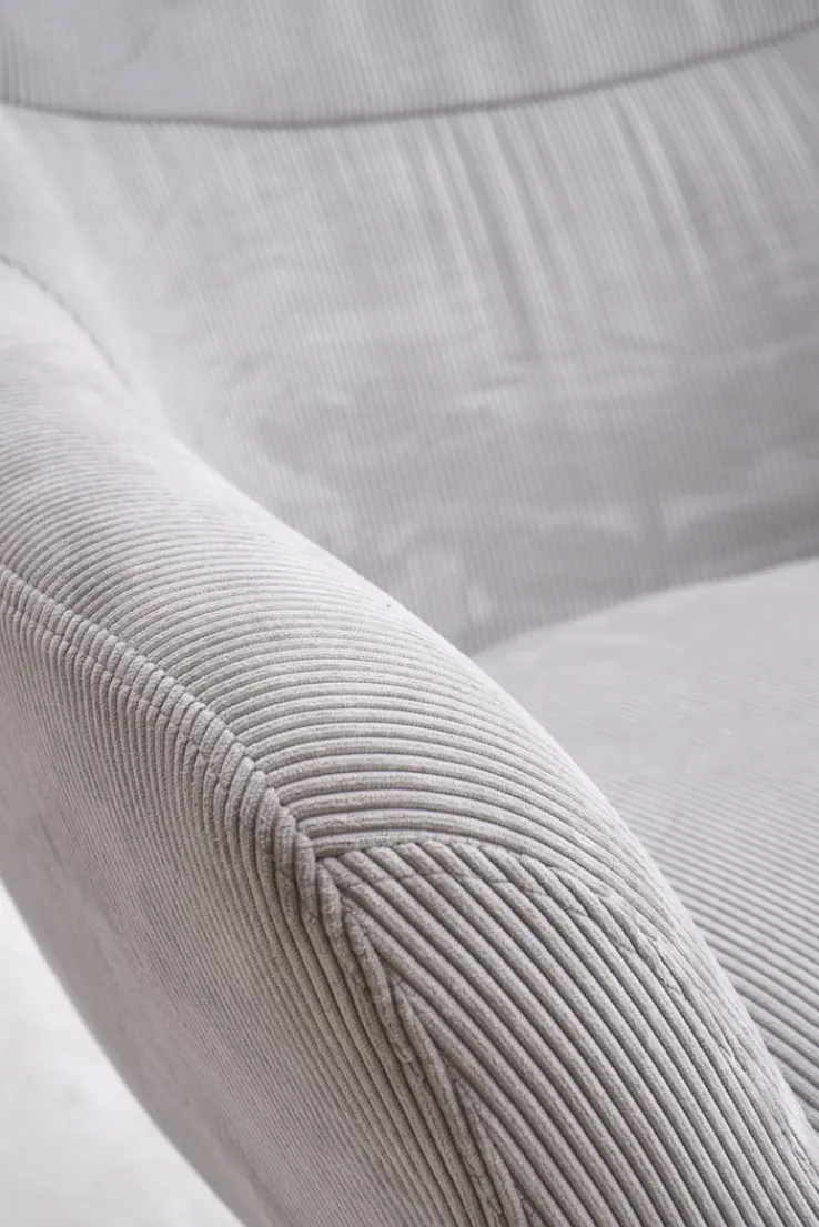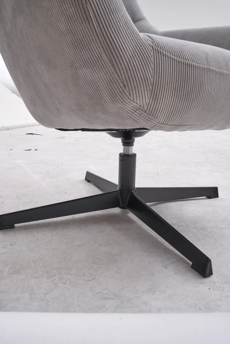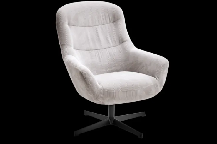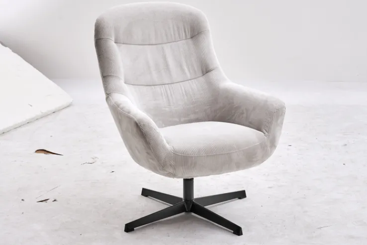 Dieser besticht im Design durch den beigefarbenen Cordbezug sowie das schwarze Fußkreuz. Letzteres ist pulverbeschichtet. Die Marke Quartier bietet hier einen Sessel, der mit festen, gepolsterten Armteilen ausgestattet ist. Für den Polsteraufbau kommt sogenannter Polyurethanschaum (PUR-Schaum) zum Einsatz. Der Bezug selbst ist aus 100 Prozent Polyester (PES). Mit einer Breite von 84,5 cm, einer Höhe von 94,5 cm und einer Tiefe von 73 cm ist dieses Möbelstück bis maximal 120 kg belastbar. Der creme-weiß-farbige Relaxsessel DIEGO eignet sich für den Innenbereich.