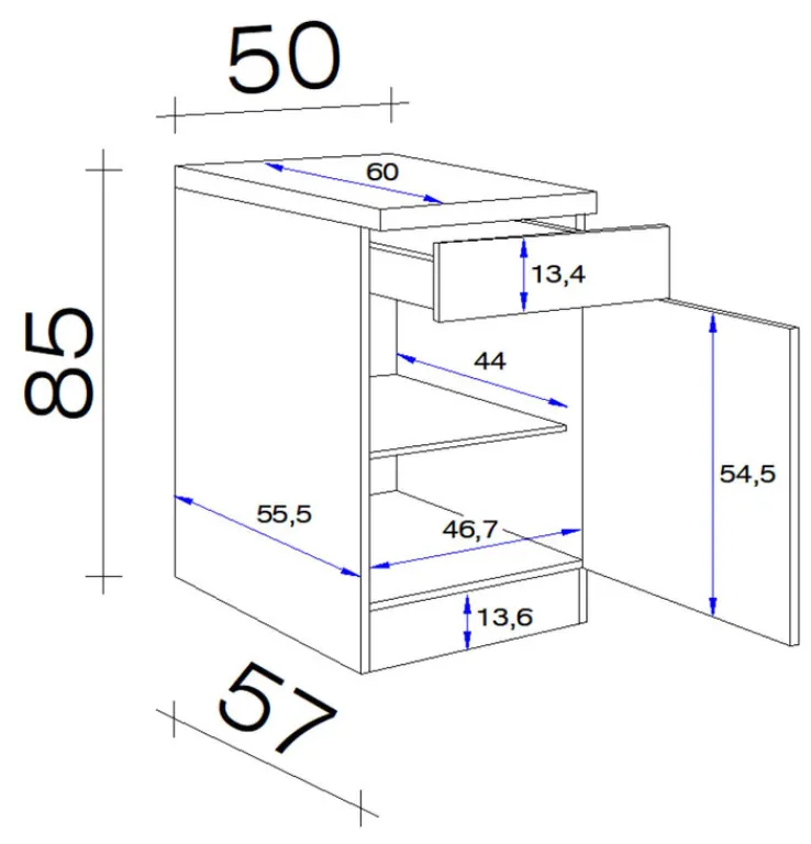 Sockelblende inklusive: jaGriffe inklusive: jaAnzahl Drehtüren inklusive: 1Anzahl Falttüren inklusive: keineAnzahl Schubkästen inklusive: 1
