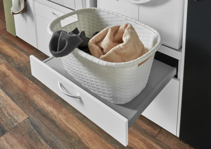 Der Waschmaschinenumbauschrank aus der Serie MULTIRAUMKONZEPT bietet eine praktische Lösung für die Organisation im Haushalt.