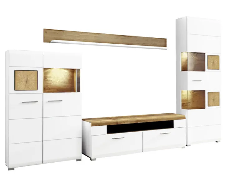 Setartikel: jaAnzahl Teile im Set: 4 Stk.Breite Setartikel 1: 65 cmHöhe Setartikel 1: 205 cmTiefe Setartikel 1: 37 cmSetartikel-Inhalt 1: VitrineAnzahl Setartikel-Inhalt 1: 1 Tiefe Setartikel 2: 37 cmBreite Setartikel 2: 80 cmHöhe Setartikel 2: 139 cmSetartikel-Inhalt 2: VitrineAnzahl Setartikel-Inhalt 2: 1 Tiefe Setartikel 3: 47 cmBreite Setartikel 3: 140 cmHöhe Setartikel 3: 51 cmSetartikel-Inhalt 3: TV-LowboardAnzahl Setartikel-Inhalt 3: 1 Breite Setartikel 4: 180 cmHöhe Setartikel 4: 18 cmSetartikel-Inhalt 4: WandboardAnzahl Setartikel-Inhalt 4: 1 Tiefe Setartikel 4: 22 cmAnzahl Schubkästen inklusive: 2Anzahl Beleuchtungen inklusive: 3Anzahl Drehtüren inklusive: 3Anzahl offene Fächer inklusive: 1Griffe inklusive: ja