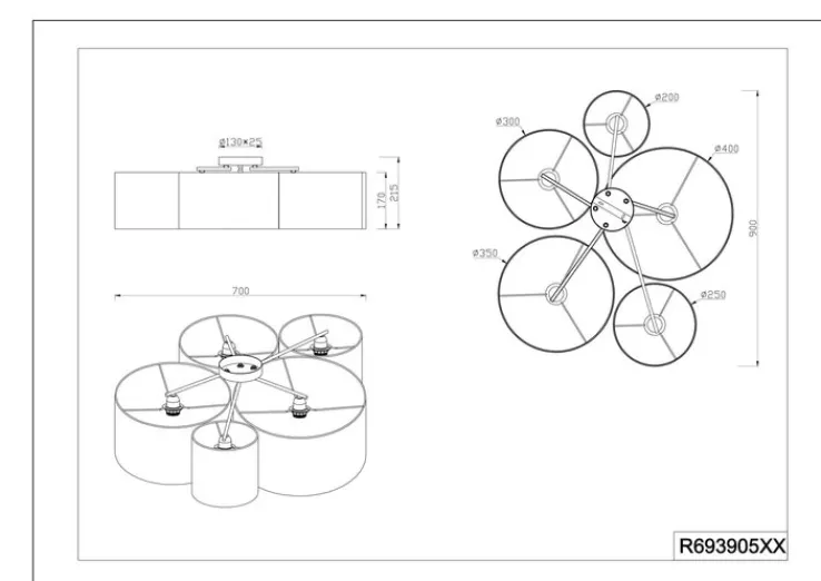 Die Retrofit Deckenlampe CARLTON vom Hersteller Reality Leuchten RL ist 5-flammig und mit Lampenschirmen in Schwarz mit goldfarbiger Innenseite ausgestattet und hat eine Gesamtgröße von 90 x 70 cm (BxL). Die Deckenlampe CARLTON ist aus schwarzem Metall mit einer matten Optik gefertigt und besticht durch ringförmig angeordnete, elegante Lampenschirme aus Stoff.