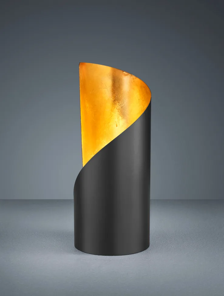 Die 1-flammige Tischlampe von der Marke Reality besteht aus hochwertigem Metall und hat die Form eines Zylinders, wobei der Rand nicht überall gleich hoch ist. Während sich die Außenseite in einem matten Schwarz zeigt, glänzt das Innere in einem funkelnden Gold. Die Lampe eignet sich für ein 25 Watt Retrofit oder für ein LED Leuchtmittel. Sie kann beispielsweise als Hintergrundbeleuchtung im Wohnzimmer oder als Nachttischlampe im Schlafzimmer eingesetzt werden.