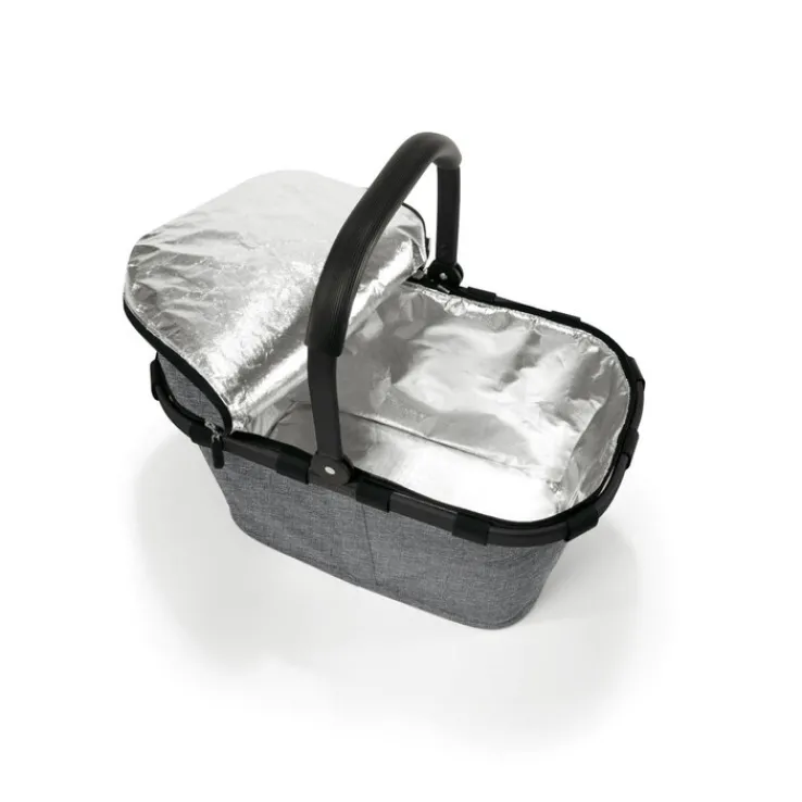 Der CARRYBAG ISO der Qualitätsmarke reisenthel verfügt über einen festen Boden mit Standfüßen, dadurch ist beim Abstellen das wasserabweisende Polyestergewebe geschützt. Ein weich ummantelter Griff sorgt für einen hohen Tragekomfort. Wird der Kühlkorb nicht benötigt, lässt er sich flach zusammenlegen, der Griff ist umklappbar. In der praktischen Kühltasche bleiben Lebensmittel im Sommer länger frisch und Getränke kühl. Sie hat ein Fassungsvermögen von 22 Litern, in der Innentasche mit Reißverschluss lassen sich Schlüssel, Handy oder Geldbörse sicher unterbringen.