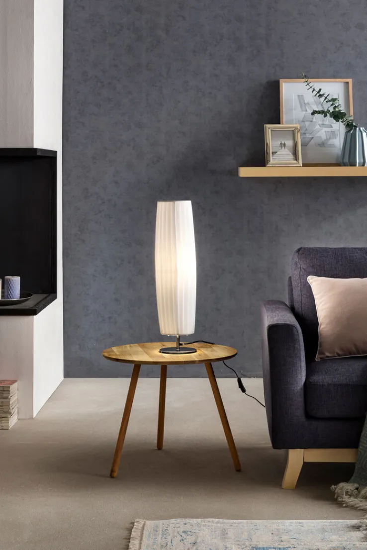 Die runde Retrofit Tischlampe in Weiß hat eine Höhe von 60 cm und macht auf Beistelltischen sowie Sideboards eine gute Figur. Mit ihrem außergewöhnlichen, modernen Design und der angenehmen Beleuchtung ist sie ein Must-Have für verschiedene Wohnräume.