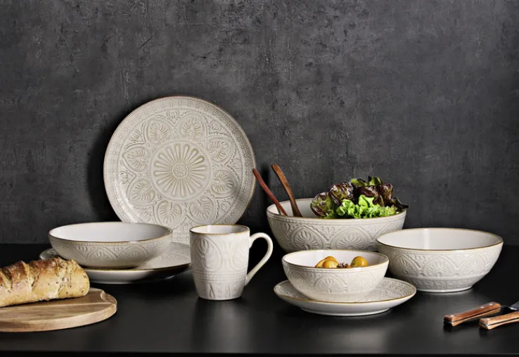 Dieses schicke Service ist aufgrund seiner Reaktivglasur sowie seiner Relief-Ornamentik ein visuelles Highlight auf jedem Frühstückstisch. Es besteht aus jeweils vier Tassen, flachen Tellern sowie Schalen und ist somit ideal für die gemeinsame erste Mahlzeit des Tages geeignet. Nach seiner Verwendung kann es ganz unkompliziert in die Spülmaschine gestellt werden, sodass ein zeitraubender und nervenaufreibender Abwasch unnötig ist. Und falls man einmal Getränke oder Speisen schnell und unkompliziert erwärmen möchte, ist dies dank der Mikrowelleneignung ebenfalls kein Problem.