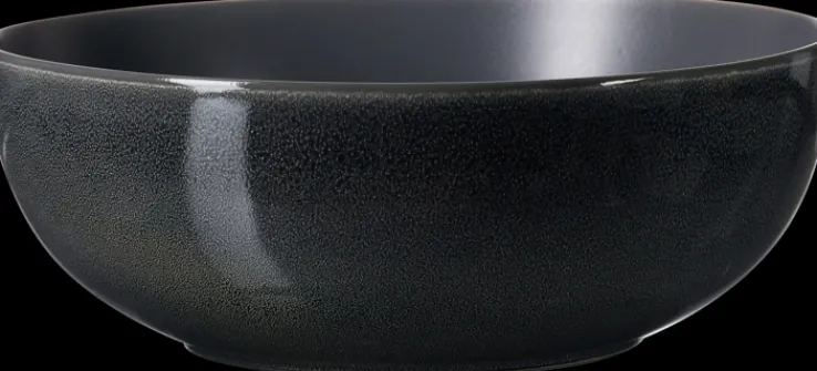 Die Innen- und Unterseiten zeigen ein softes Matt-Finish. An den Außen- und Oberseiten ist eine Reaktivglasur aufgebracht. Dabei werden verschiedene Materialien verwendet, die einen ganz besonderen Glanz erzeugen und eine gewisse Körnung sehen lassen. Die graue Steinzeug-Schüssel TOLEDO ist Teil einer umfangreichen Geschirrserie desselben Namens. Sie kann eine Salatbeilage aufnehmen, für Süßigkeiten verwendet werden oder andere Zwecke erfüllen.