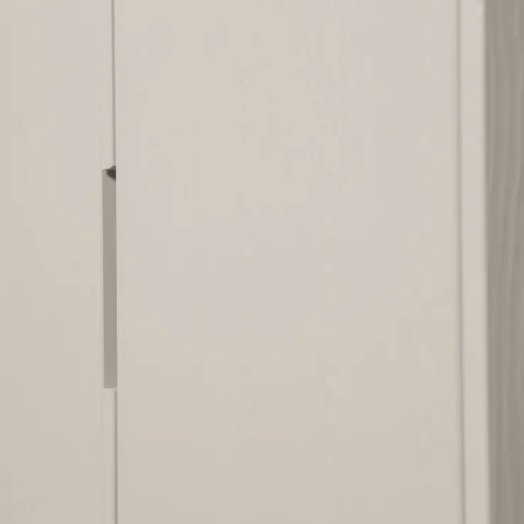 Sein zeitlos elegantes Erscheinungsbild macht den Schrank SILAS zum vielseitig kombinierbaren Möbelstück. So bietet er sich als Garderobenschrank für die Diele ebenso an wie als zusätzlicher Stauraum im Wohn- oder Schlafzimmer. Hinter zwei Drehtüren stehen insgesamt sechs Ablagefächer zur Verfügung. Weitere Dinge lassen sich im unteren Schubkasten verstauen. Der schwarze Metallsockel bildet einen attraktiven Kontrast zu den hellen Fronten und erlaubt die einfache Reinigung unter dem Schrank.