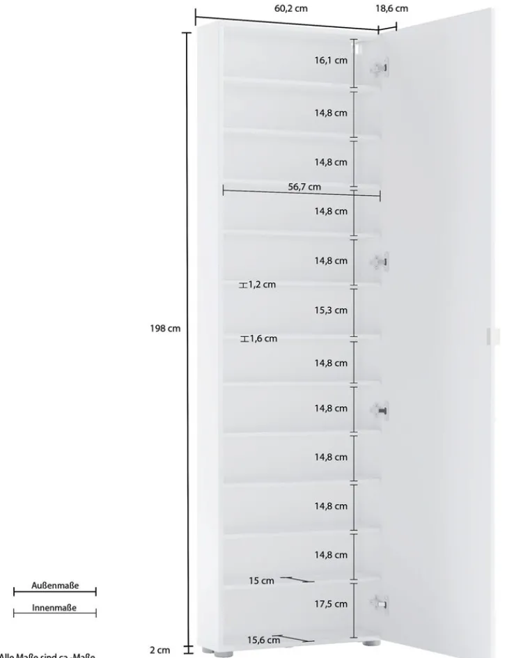 Anzahl Drehtüren inklusive: 1Anzahl Einlegeböden inklusive: 10