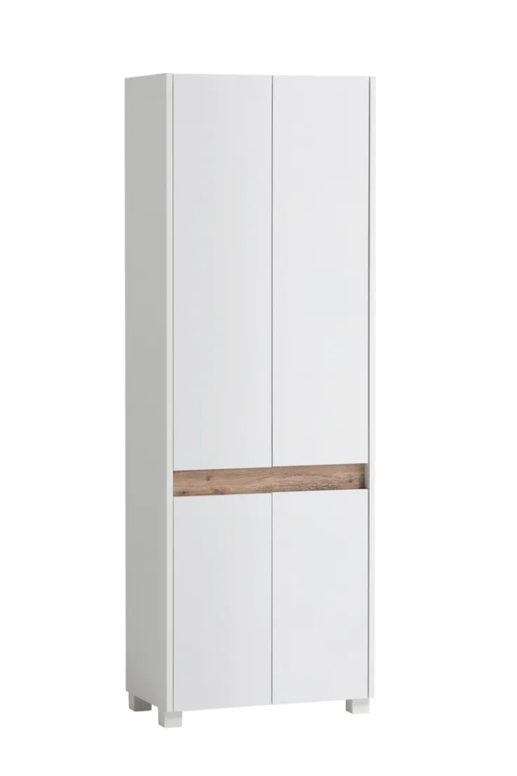Der weiße Schuhschrank COSMO mit der Größe 57 x 165 cm bereitet der Frage „Wohin bloß mit all den Schuhen“ endlich ein Ende. Hinter seinen Türen ist reichlich Platz für Pumps, Sneekers und Co., und abgesehen davon ist er auch noch richtig robust.