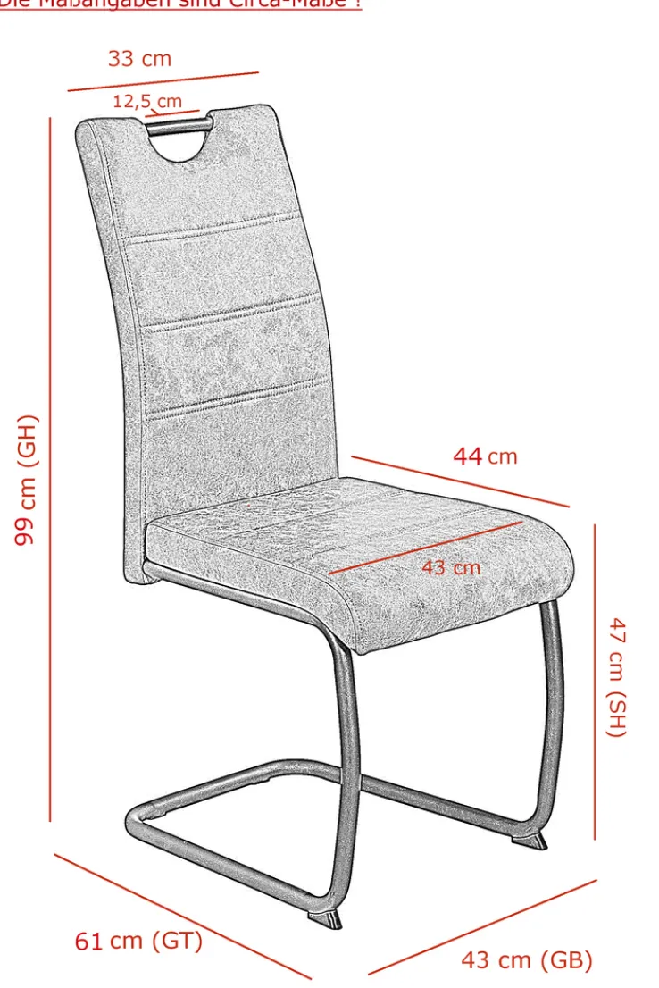 Die maximale Belastbarkeit beträgt 120 kg. Ob als stilvolle Ergänzung im Esszimmer oder als komfortable Sitzgelegenheit in der Wohnküche, der Schwingstuhl fügt sich nahtlos in verschiedene Einrichtungsstile ein.