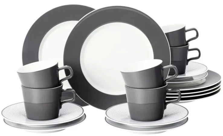 Das Seltmann Weiden Kaffeeservice NO LIMITS setzt sich aus 18 harmonisch aufeinander abgestimmten Teilen zusammen, die sich in Anthrazit und Weiß präsentieren.