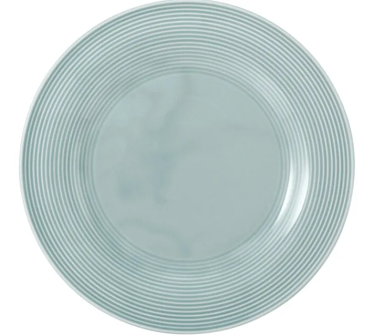 Auffällig sind die schönen Ringe am Rand, die sich bis weit Richtung Tellermitte ziehen. So wird die Rundform betont, auch bietet dieses Design eine zusätzliche Veredelung, die dem arktisblauen Geschirr sehr gut steht. Der Teller ist groß und eignet sich daher wunderbar, um eine vollständige Mahlzeit mit Fleisch oder Fisch, Gemüse und Beilagen zu servieren, wobei alles schön nebeneinanderliegen kann. Da der Teller für die Mikrowelle geeignet ist, lassen sich hier Speisen erwärmen oder überbacken. Der Teller BEAT COLOR GLAZE passt zu dem gleichnamigen Geschirr, außerdem kann er auch in anderen Farben bestellt werden.