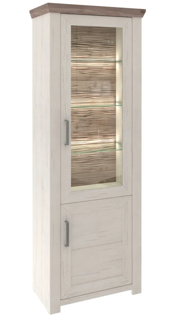 Die Vitrine YORK in Pino Aurelio Nachbildung mit Absetzung in Eiche Nelson ist ein Blickfang für jede Wohnung und harmoniert wunderbar mit weiterem Mobiliar der Serie.