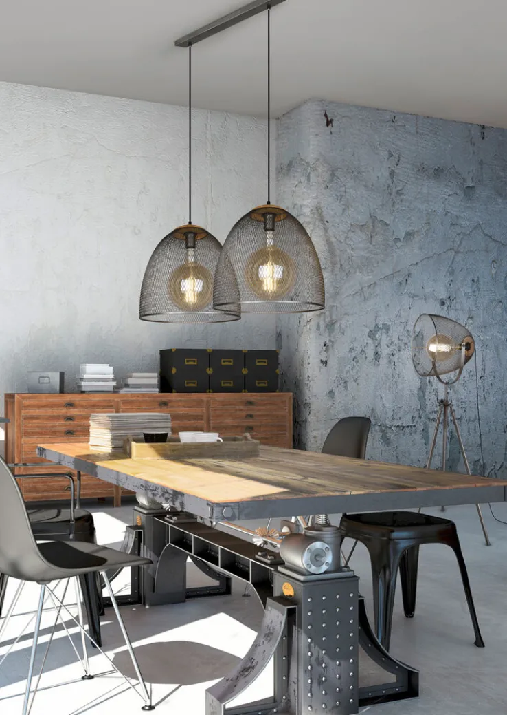 Die 2-flammige Retrofit Pendellampe IVAR von TRIO überzeugt mit ihrem stilsicheren Design und passt in modern eingerichtete Wohnbereiche. Auch für Räumlichkeiten im Vintage- oder Industry-Stil ist die Lampe ist sie geeignet. Sie beleuchtet den Esstisch im Wohn- oder Esszimmer und ist auch für den Thekenbereich in einer Küche ideal. Durch die schönen Lampenschirme in Gitteroptik fällt die Pendellampe sofort ins Auge. Gleichzeitig sorgt sie für ein angenehmes Licht mit Reflexionen.